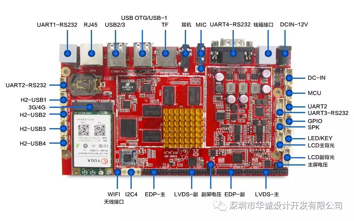华诚S2809采用瑞芯微四核芯片RK3288方案,主频1.8GHz,搭载Android5.1系统,支持常用外接设备,接口丰富、性能稳定。板卡支持双EDP和双LVDS双显示输出接口,支持3G/4G数据通信,WIFI/蓝牙(可支持2.4G/5GWIFI),支持当前流行的视频及图片格式解码,支持双屏异显,支持4K、H.265硬解码。支持单路、双路、EDP/LVDS显示,非常适合于商显广告机和POS收银机,触摸一体机等。